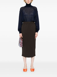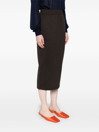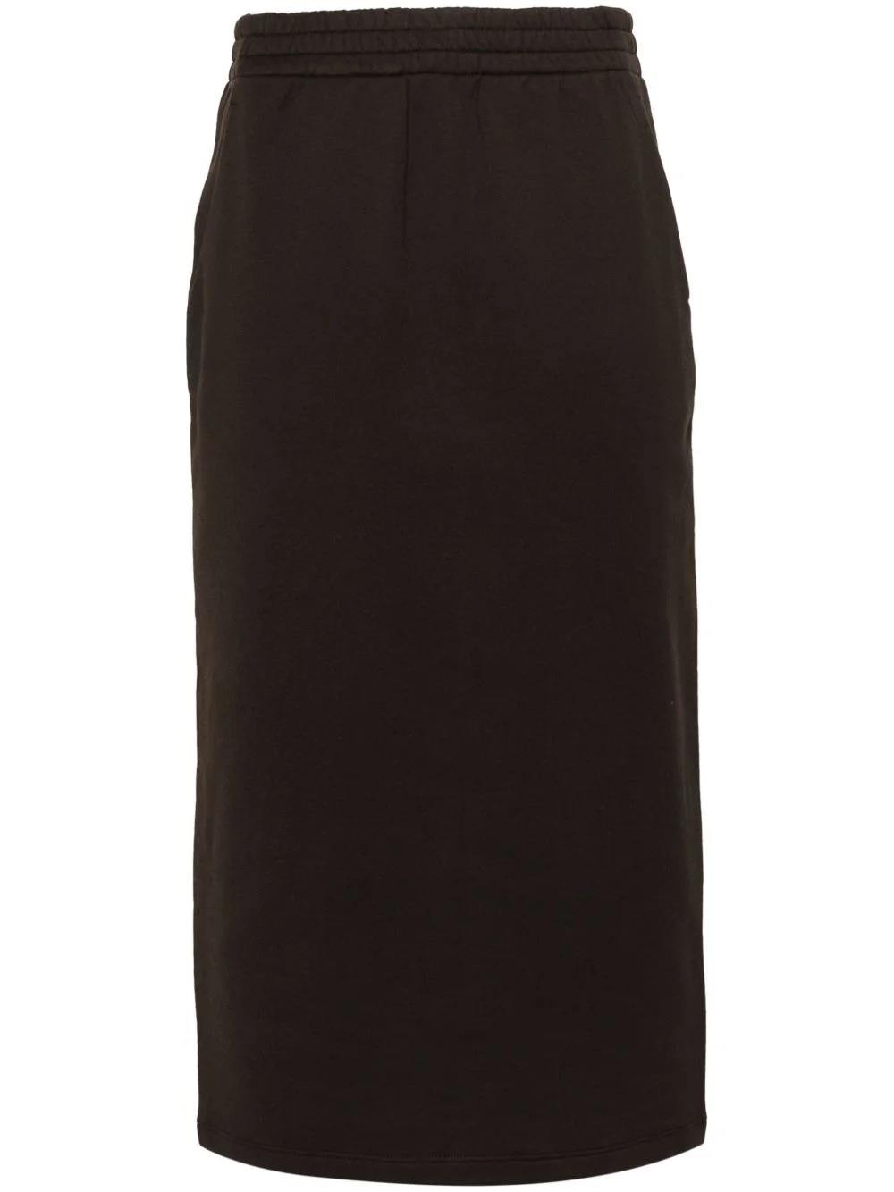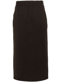 cotton jersey midi skirt Highlights - Chocolate brown - Cotton - Jersey texture - Elasticated waistband - Two diagonal pockets to the sides - Rear slit - Straight hem - Mid-length - Pull-on style Composition Outer: Cotton 100% Lining: Cotton 100% SIZE & FIT Model measurements Height 5 ft 9 in(1.75 m) Bust/Chest 34.64 in(88 cm) Hips 36.61 in(93 cm) Waist 26.37 in(67 cm) FittingInformation This midi-length skirt is intended to be worn just below the waist The elasticated waist allows for a comfortable fit Made from a midweight non-stretch fabric, this piece offers minimal elasticity when worn This piece fits true to size – take your usual size