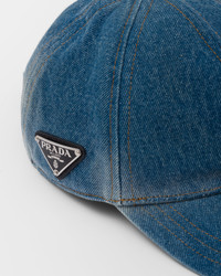 A cult fabric of streetwear and casual clothes, denim is reinterpreted by Prada on new garments and accessories with a contemporary spirit like this baseball cap made iconic by the enameled metal triangle logo. - Product code: 1HC274_12K1_F0V3N - Washed denim - Enameled metal triangle logo - Imported MATERIALS Main material: Cotton