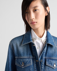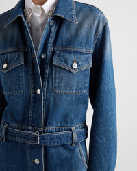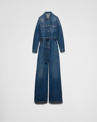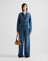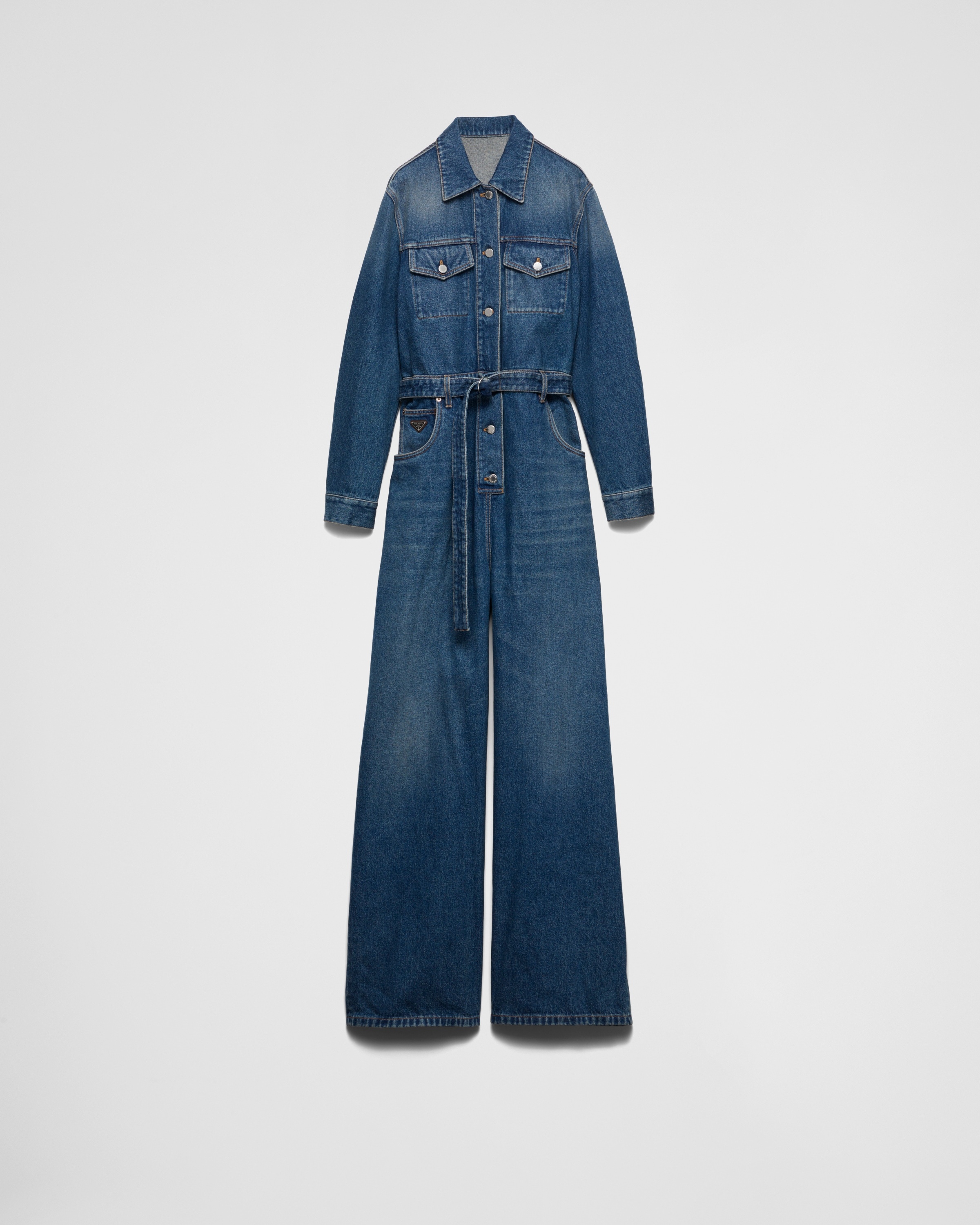 This jumpsuit's loose-fitting silhouette, adorned with contrasting stitching and a triangle logo, embodies the essence of modern luxury. The washed finish creates a casual, contemporary look. - Code du produit: GFZ017_12OY_F0008_S_OOO - Washed treatment - Loose fit - Unlined garment - Shirt collar - Front button closure - Long sleeves - Contrast stitching - Triangle logo - Length from centre back 128 cm, size 38 - High pockets with flap and front button - Low rounded pockets with front coin pocket - Belt with buckle - Prada Milano logo label on the back - Importe - The model is 180 cm tall and wears a size 38 Taille: 120cm MATERIALS Cotton