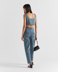 The boxy silhouette of this denim top is emphasized by the washed treatment that gives the garment a worn vintage-effect finish. The versatile and modern style with contrasting top-stitching is decorated with the enameled metal triangle logo. - Product code: GFT024_13Z6_F0BAN_S_OOO - Washed denim - Boxy fit - Unlined garment - Length from center back 32 cm, Size: 38 - Contrasting top-stitching - Triangle logo - Imported - The model is 180 cm tall and wears a size 38 - Height: 32cm MATERIALS Cotton