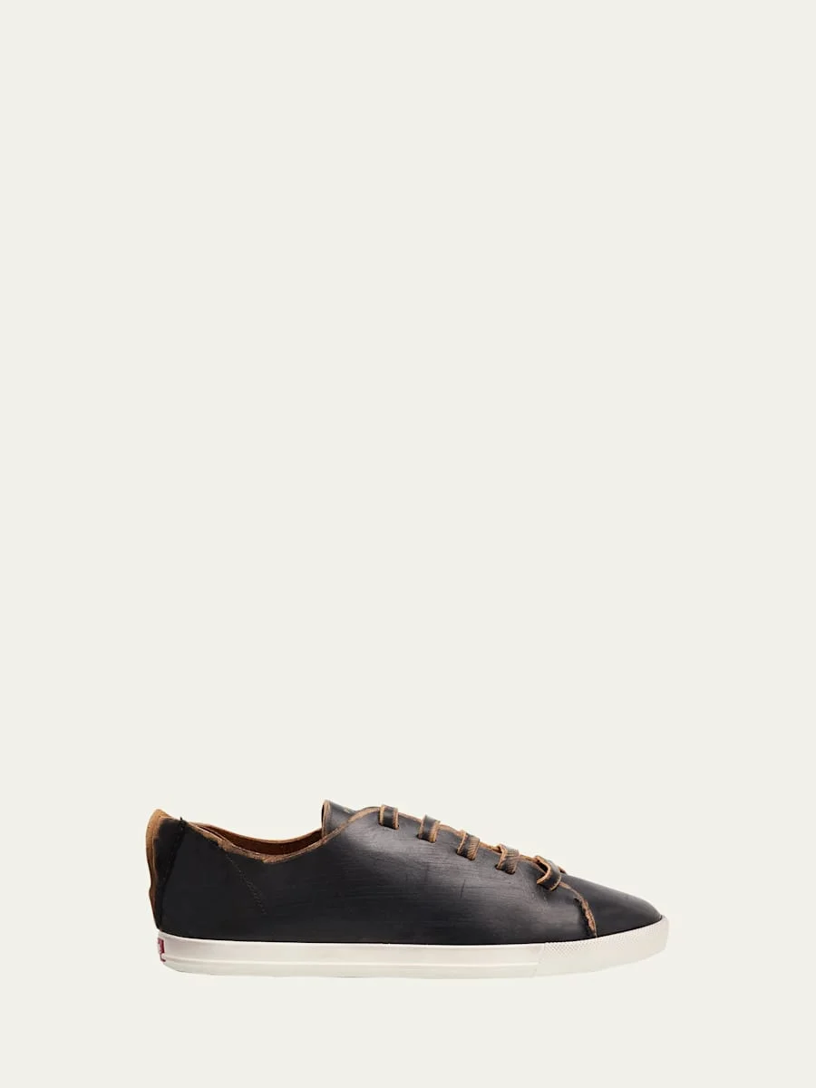Detailed with unique deconstructed seaming at the heel and worneffect trim, these Prada sneakers are crafted from smooth calf leather 0.50 in / 15 mm flat heel Round toe Logo print at tongue and insole Laceup vamp Leather lining Rubber outsole Professional cleaning recommended Made in Italy