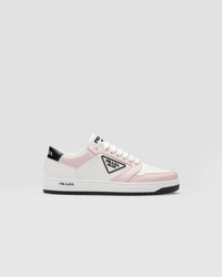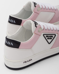 These sporty sneakers made of perforated leather feature various interpretations of the Prada logo that appears on the tongue, along the light rubber sole, and in the form of an embossed rubber detail decorating the side. - Product code: 1E790M_3LJ6_F0D8U_F_030 - Perforated motif on the upper - Leather lining - Embossed rubber triangle logo - Cotton laces - 30 mm expanded rubber sole - Geometric tread - Removable leather-covered insole MATERIALS Leather