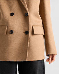 Inspired by the sartorial elegance of menswear, this cashgora blazer is characterized by a double-breasted silhouette with classic and refined details. - Product code: P697R_13FY_F0040_S_OOO - Menswear fit - Unlined - Classic lapel - Front button closure - Straight sleeves - Flapped welt pockets - Back vent - Fabric triangle logo - Imported - The model is 179 cm tall and wears a size 38 Height: 78cm MATERIALS Wool