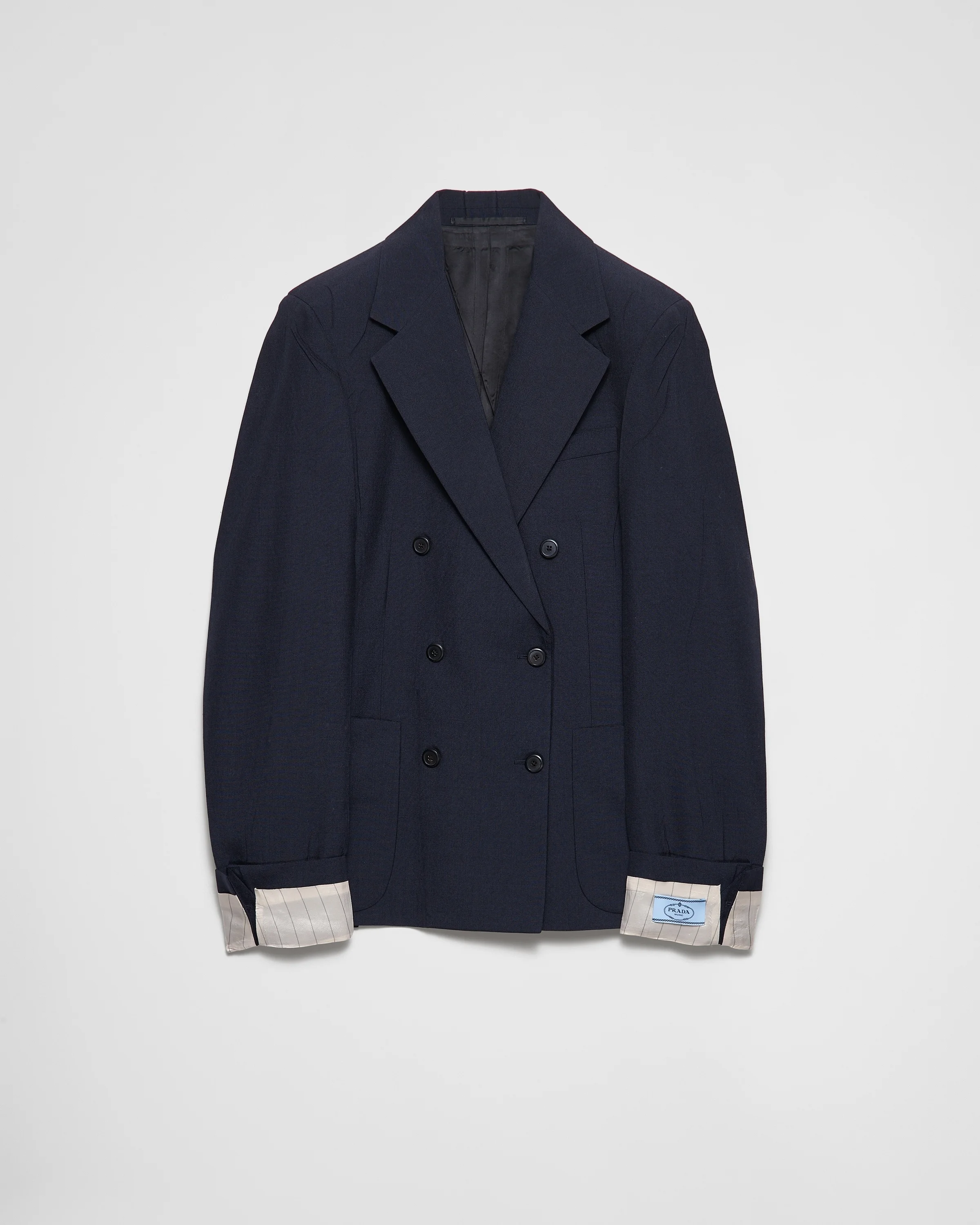 This kid mohair jacket has a classic menswear-inspired double-breasted silhouette. The turned-up sleeves reveal the lining, suggesting a sophisticated, casual gesture. - Product code: P548P_12I1_F0008_S_OOO - Menswear fit - Lined - Notch lapel - Front button closure - Straight sleeves with button on the cuff - Patch pockets - Back vents - Sartorial logo label - Sleeve with turned up cuff and sartorial label - Imported - The model is 178 cm tall and wears a size 38 Height: 70cm MATERIALS Main material: 60% mohair 40% virgin wool