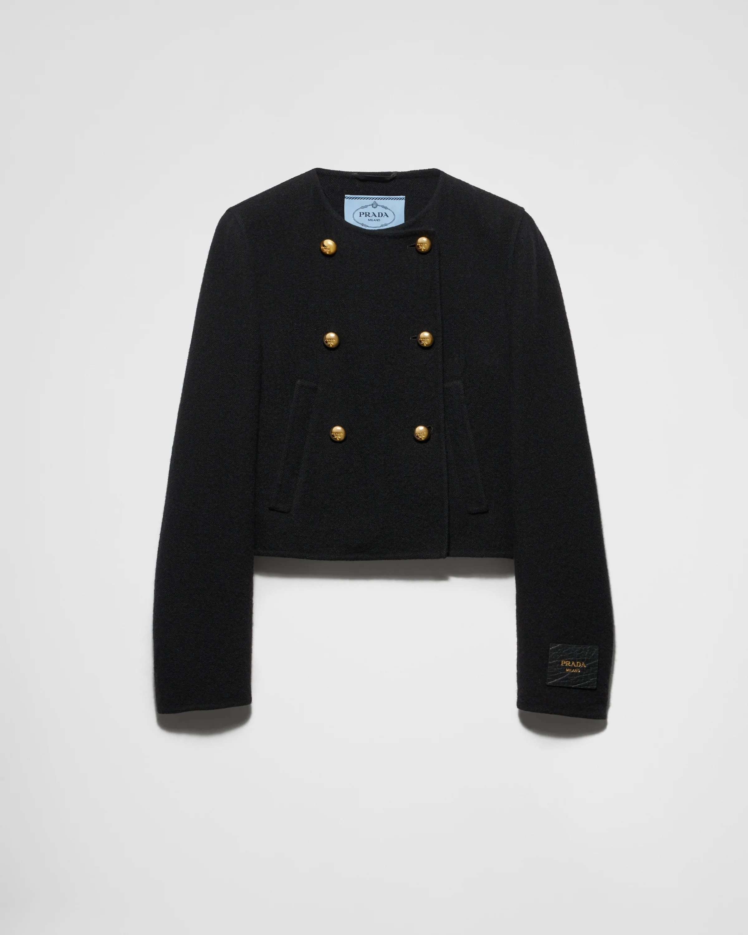 This refined double-breasted jacket with a boxy cut combines clean lines and feminine details, illuminated by jewel buttons. - Product code: P527PE_13C0_F0002_S_OOO - Boxy fit - Unlined - Round neck - Jeweled button front closure - Straight sleeves - Flap pockets - Half-belt on the back - Imported Height: 48cm MATERIALS Main material: 1% cotton 20% polyamide 79% wool