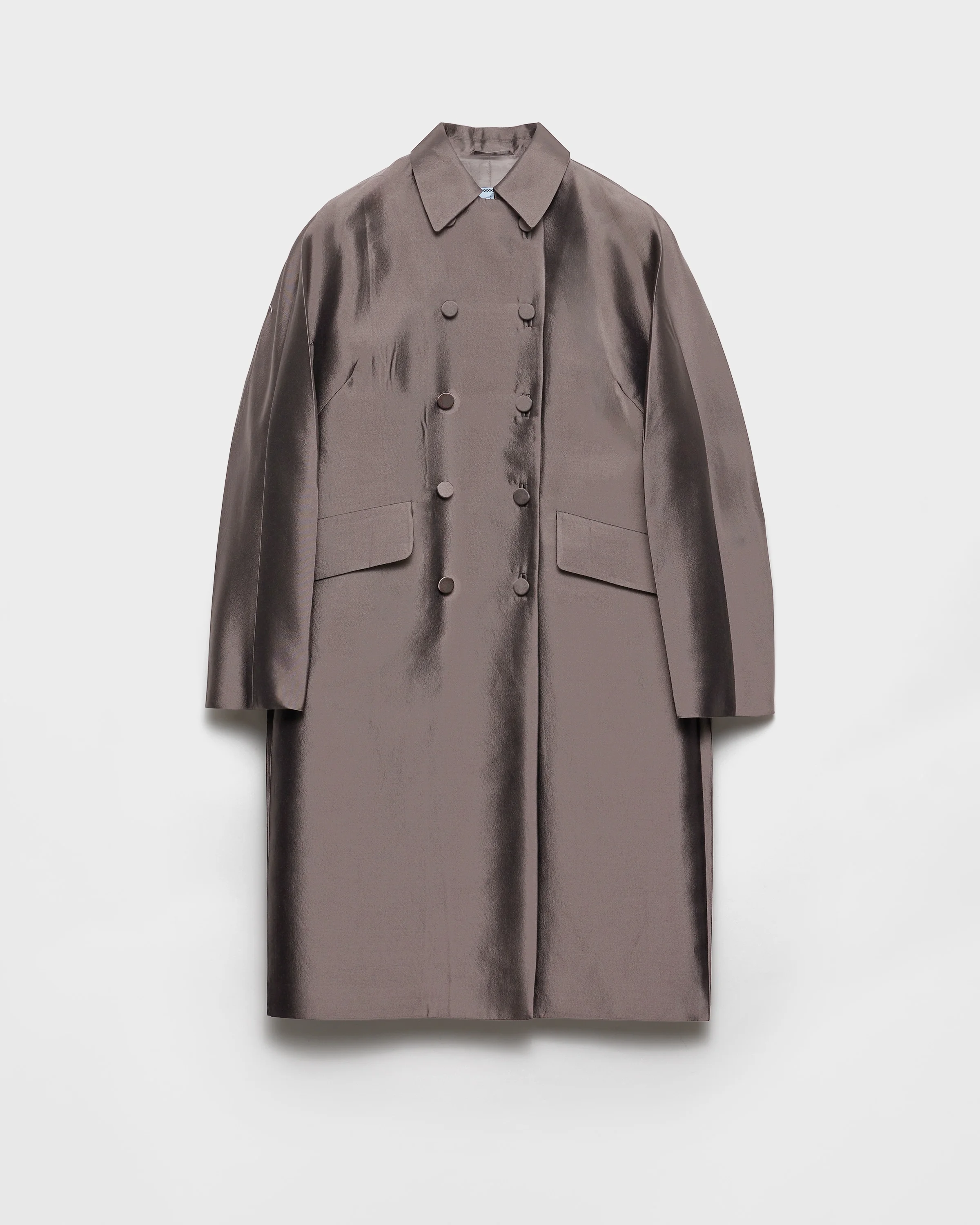 Made from a fine wool and silk blend, this straight-cut coat expresses sophisticated simplicity. Sartorial details, refined finishes, and the fabric triangle logo enhance its iconic identity. - Product code: P666S_BH7_F0031_S_OOO - Straight fit - With collar - Front button closure - Straight sleeves - Flap pockets - Fabric triangle logo - Imported - The model is 176 cm tall and wears a size 38 Height: 105cm MATERIALS Main material: 52% silk 48% wool