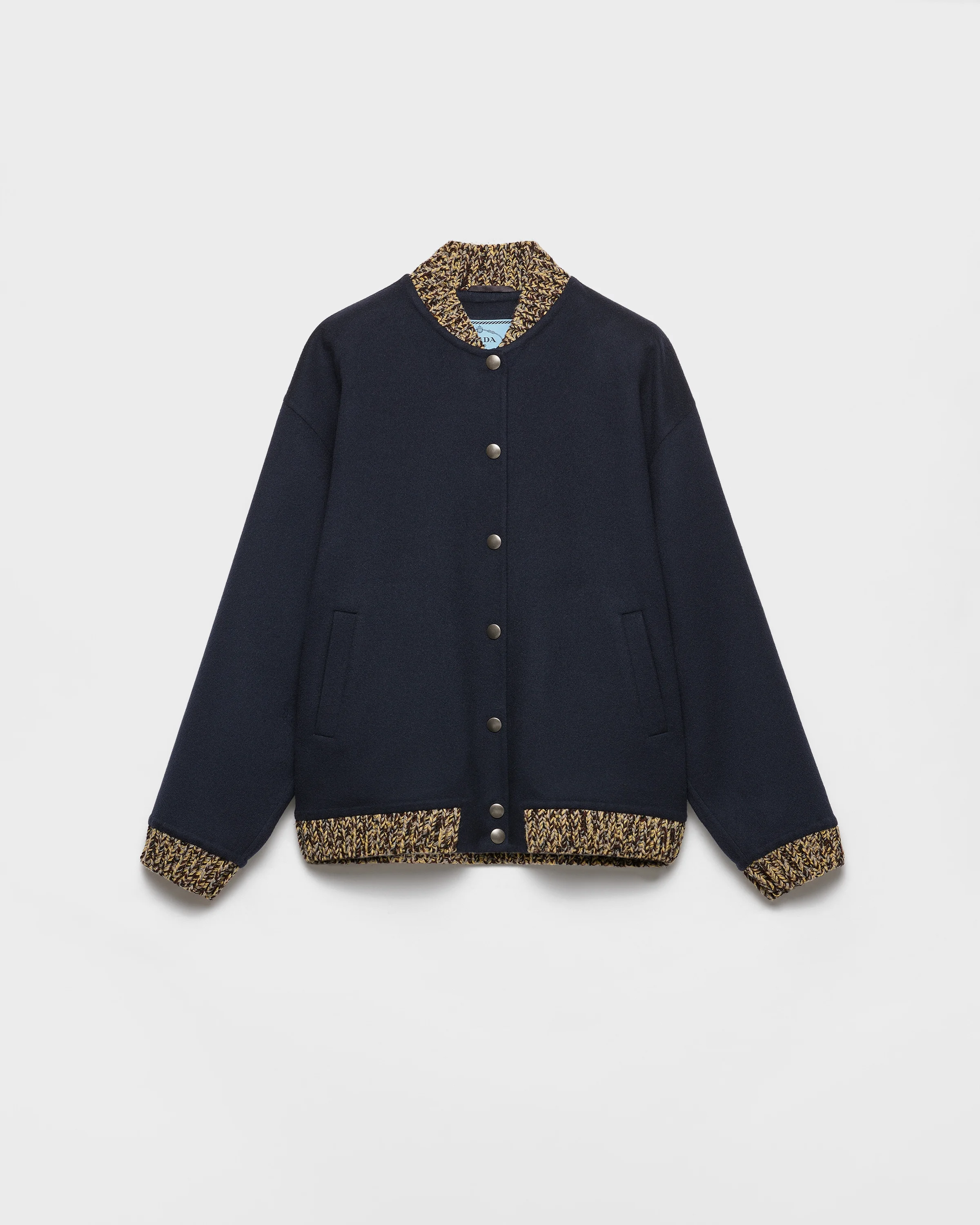 The college-style silhouette of this bomber jacket is reinterpreted with a sleek, contemporary style. The garment made with a fine cashmere and wool blend fabric features melange wool knit details that add a distinctive touch. - Product code: P8010_179C_F0008_S_OOO - Knit collar - Long sleeves with knit cuffs - Front snap closure - Angled pockets - Unlined - Jacquard logo - Imported - The model is 180 cm tall and wears a size 38 Height: 64cm MATERIALS Main material: 20% cashmere 80% virgin wool