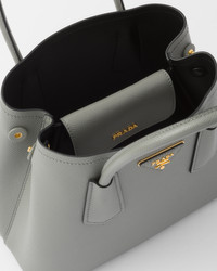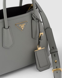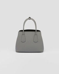 Refined, delicate details give new life to iconic designs of the brand like the Prada Double bag with a new mini design that is versatile and sophisticated. A tonal leather triangle frames the iconic metal lettering logo that decorates the front, while the detachable shoulder strap lets the bag be worn slung over the shoulder or as a crossbody bag. - Product code: 1BG443_2A4A_F01T3_V_XOO - Leather handles - Detachable adjustable 105 cm leather shoulder strap - Leather name tag with metal details - Metal hardware - Leather triangle with metal lettering logo on the front - Side snap closure - Nappa leather lining with center flap pocket - With feet - Imported Height: 18.5cm Width: 25cm Length: 12.5cm MATERIALS Main material: Calfskin