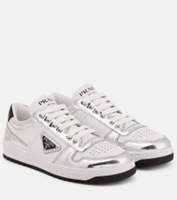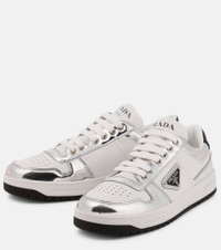 With signature branding on the uppers, tongues, heel tabs and embossed soles, the Downtown sneakers from Prada are an iconic streetwear style. They’re made in Italy from smooth leather. Product Details - Sole: leather insole, rubber sole - Toe shape: round toe - Upper: leather - Comes with dust bags, Comes with a box - Designer color name: Bianco+Argento - Closure: lace-up - Made in Italy - Item number: P00756522 Size & Fit - True to size - Slightly narrow - European sizes - 2,5cm-1" platform (size EU 38) - 3cm-1" wedge heel (size EU 38)