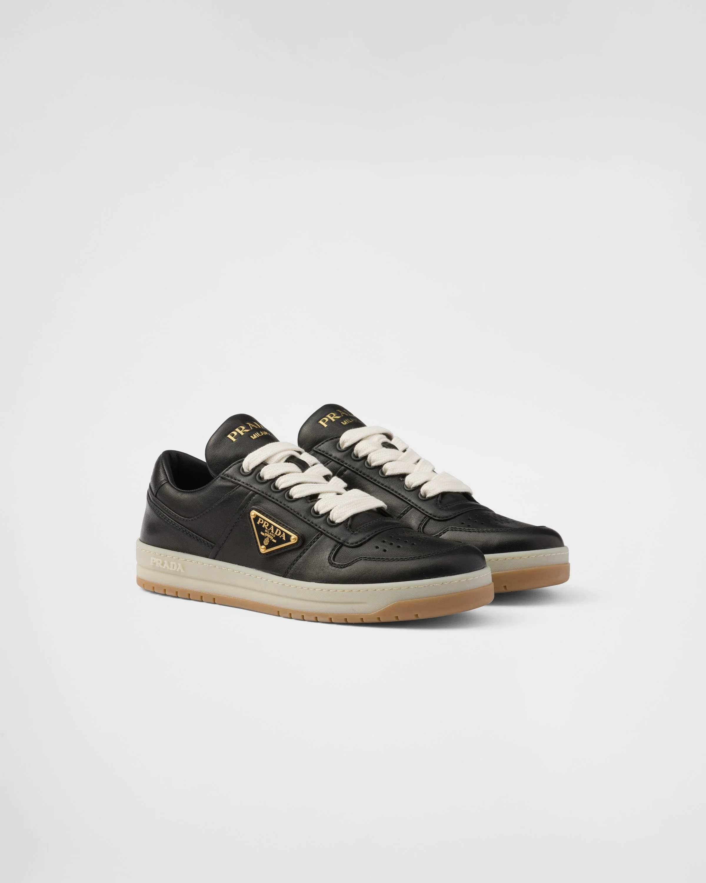 Downtown sneakers stand out for their versatile and contemporary style inspired by sporty designs with vintage charm. The footwear is characterized by perforated uppers in nappa leather and light rubber soles decorated with the enameled metal triangle logo. - Product code: 1E792M_038_F0632_F_DD30 - Upper with perforations - Leather lining - Enameled metal triangle logo - Cotton laces - Rubber sole, 30 mm - Tread with geometric lines - Removable leather-covered insole - Imported MATERIALS Main material: Lambskin