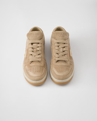 Downtown sneakers stand out for their versatile, contemporary style inspired by iconic vintage sport designs. The shoes, characterized by soft suede uppers with a perforated motif and light rubber soles, are embellished with the enameled metal triangle logo. - Codice articolo: 1E792M_Z5O_F0379_F_D030 - Upper with perforations - Leather lining - Enameled metal triangle logo - Laces - Rubber sole, 30 mm - Tread with geometric lines - Removable leather-covered insole - Importato MATERIALS Leather