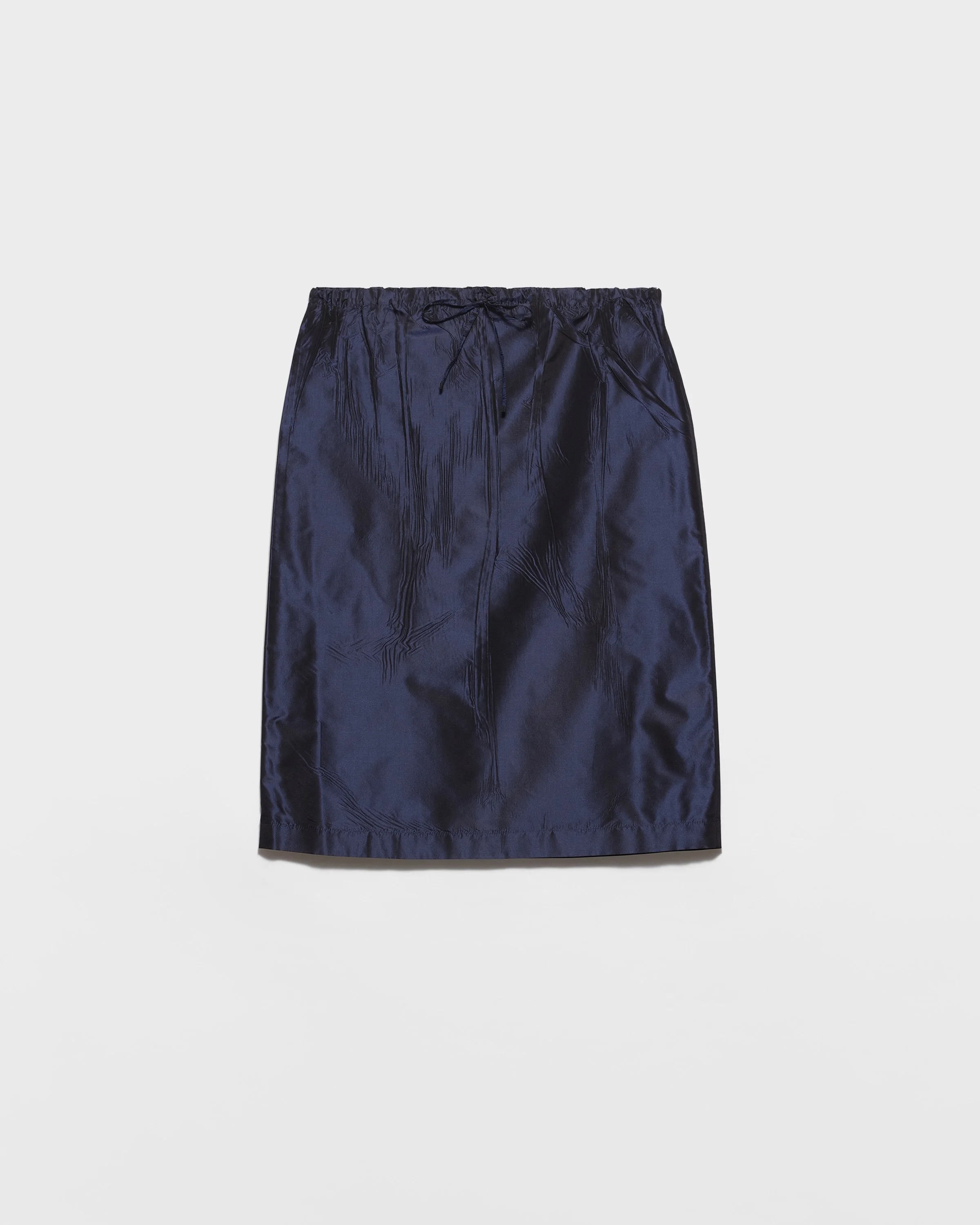 Classic sartorial rigor fades into the light lines of this midi skirt, an expression of poetic and casual elegance. The taffeta skirt combines softness and structure in a silhouette with unexpected details. - Product code: P170Z_120M_F0008_S_OOO - Pencil silhouette - Drawstring waist - Imported - The model is 178 cm tall and wears a size 38 Height: 65cm MATERIALS Main material: 100% Silk
