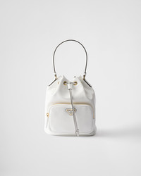 The Prada Duet bucket bag with a soft, contemporary design is made of naplak patent leather that gives the accessory a distinctive shiny effect and texture with vintage allure. - Product code: 1BH038_2DNT_F0PG7_V_UOM - Leather handle - Detachable, adjustable leather shoulder strap, length 100 cm. Maximum length 108 cm - Minimum length 92 cm - Maximum drop 54 cm - Minimum drop 46 cm - Zipper pocket - Metal hardware - Enameled metal triangle logo on the pocket - Drawstring closure - Logo-print nylon lining - Imported Height: 22.5cm Width: 17.5cm Length: 12cm MATERIALS Main material: Lambskin