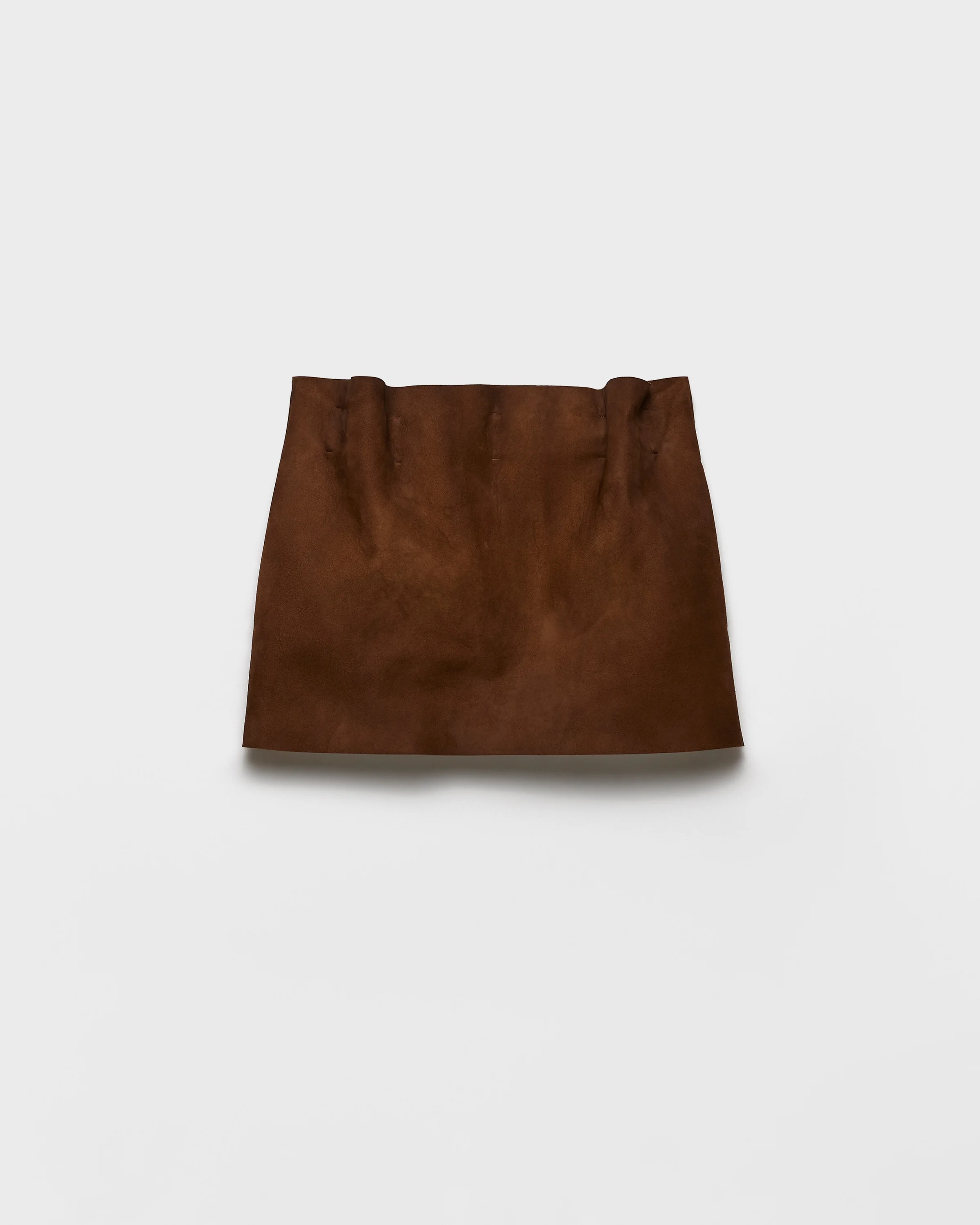 An aged treatment gives this miniskirt vintage charm. The texture of suede renews the concept of romanticism. - Product code: 51927_173B_F0324_S_OOO - Unlined garment - Mini silhouette - Inseam pockets - Vintage treatment - Internal elasticized waistband - Imported - The model is 178 cm tall and wears a size 38 Height: 35cm MATERIALS Main material: Lambskin