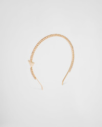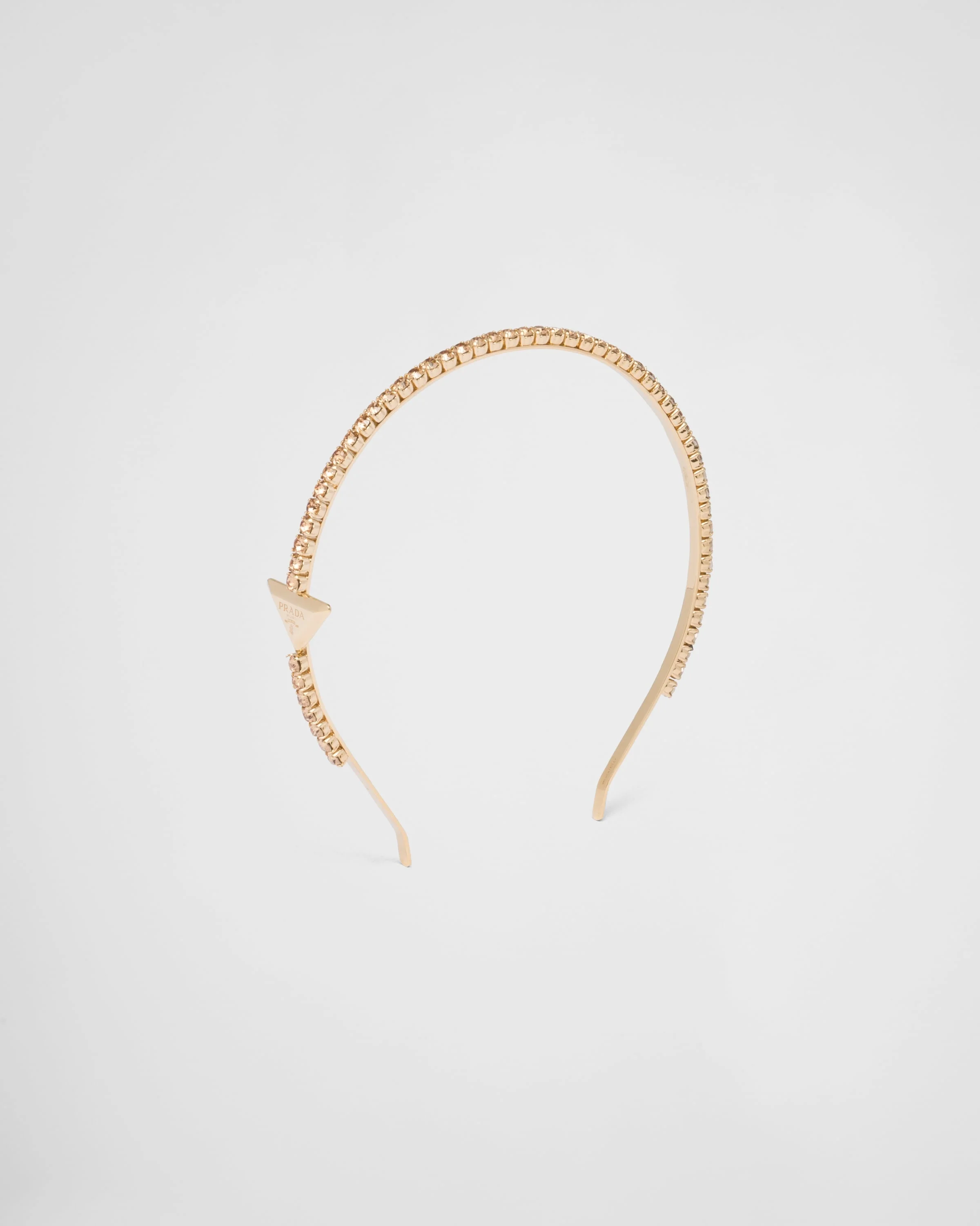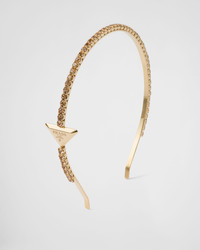 The iconic logo enhances the rigid brass headband characterized by a precious crystal embellishment that makes the accessory sparkle. - Product code: 1IH048_2CK4_F03CR - With synthetic crystals - Metal triangle logo - Imported MATERIALS Other Materials