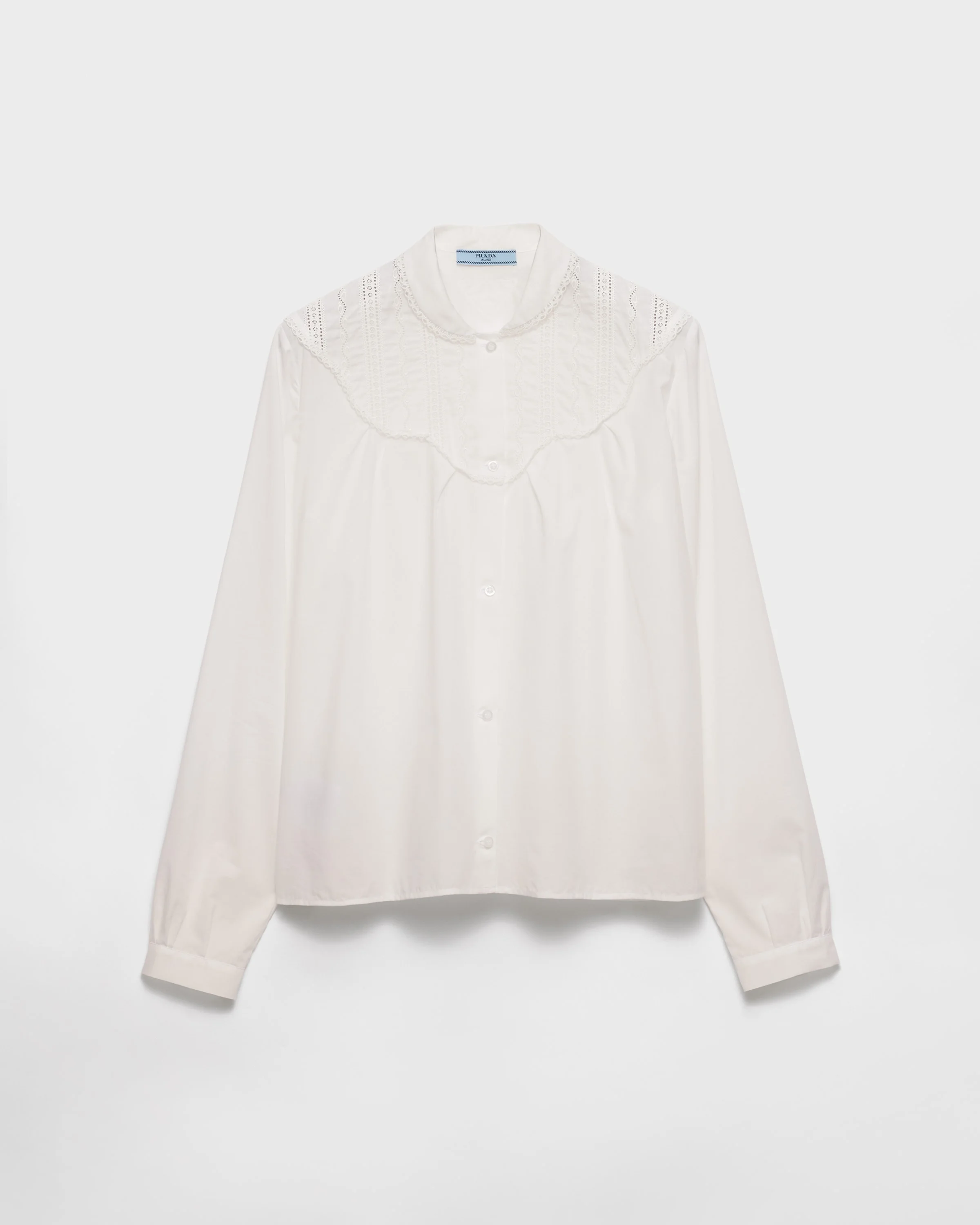 Details with vintage charm embellish this light batiste shirt, characterized by soft lines and romantic embroidery. - Product code: P458IR_17GL_F0009_S_OOO - Straight fit - Rounded collar - Front button closure - Long sleeves - Fabric triangle logo - Imported - The model is 178 cm tall and wears a size 38 MATERIALS Main material: 100% cotton