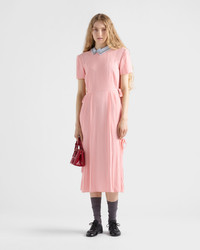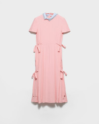 This dress made from marocain crepe embodies an intimate style and innate elegance. Retro details and feminine touches are applied in unexpected ways, such as the asymmetrical collar embellished with sparkling embroidery. - Product code: P3Q90R_18LL_F0028_S_OOO - Fit and flare - Partially-lined garment - Shirt collar - Back button closure - Short sleeves - Flared hem - Embroidered collar - Decorative bows - Imported - The model is 180 cm tall and wears a size 38 Height: 120cm MATERIALS Main material: 100% viscose