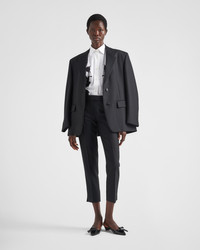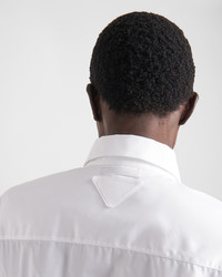 This poplin shirt with a menswear cut is characterized by a loose silhouette with straight lines. The design with classic details is animated by the contemporary touch of striking floral appliques in a contrasting color depicting the silhouette of a flower. The fabric triangle logo on the back completes the look with its iconic signature touch. - Product code: P488GR_14B0_F0009_S_OOO - Menswear fit - Shirt collar - Front button closure - Sleeves with shirt cuffs - Fabric triangle logo - Poplin applique in a contrasting color - Imported - The model is 180 cm tall and wears a size 38 Height: 78cm MATERIALS Cotton