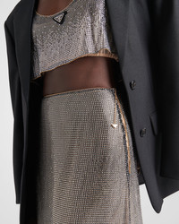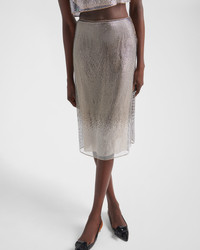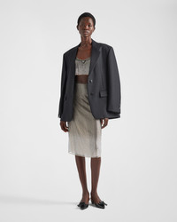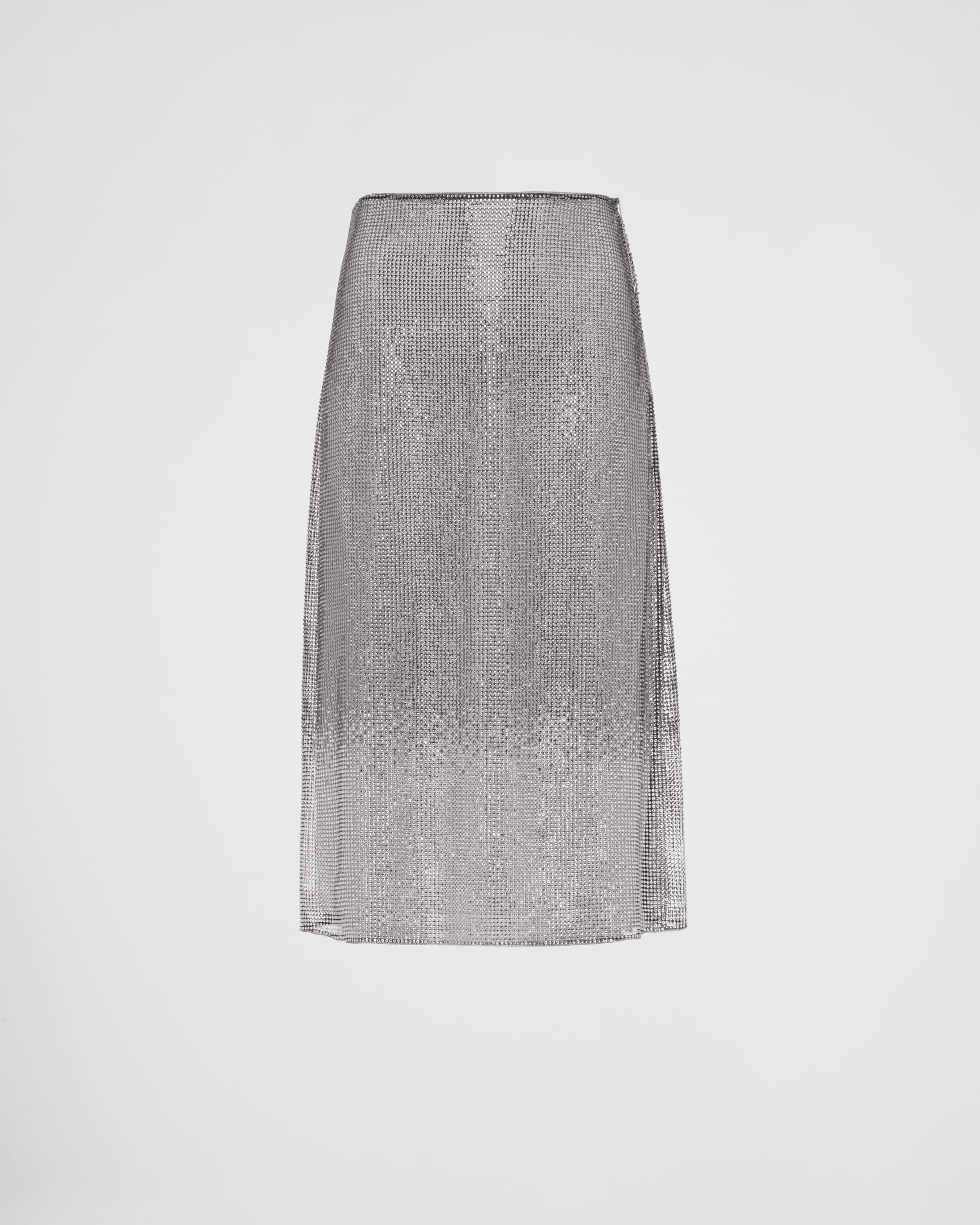 Delicate glimmers animate this midi-skirt with a soft, slightly flared A-line silhouette. The precious garment is emphasized by a play of gradient crystals that add a dynamic and distinctive touch to the refined design with contemporary allure. - Product code: P114JR_1315_F0Z2D_S_OOO - A-line fit - Garment with slip - Side hook closure - Triangle logo - Embroidered with gradient rhinestone embellishment - Imported - The model is 180 cm tall and wears a size 38 Height: 70cm MATERIALS Nylon