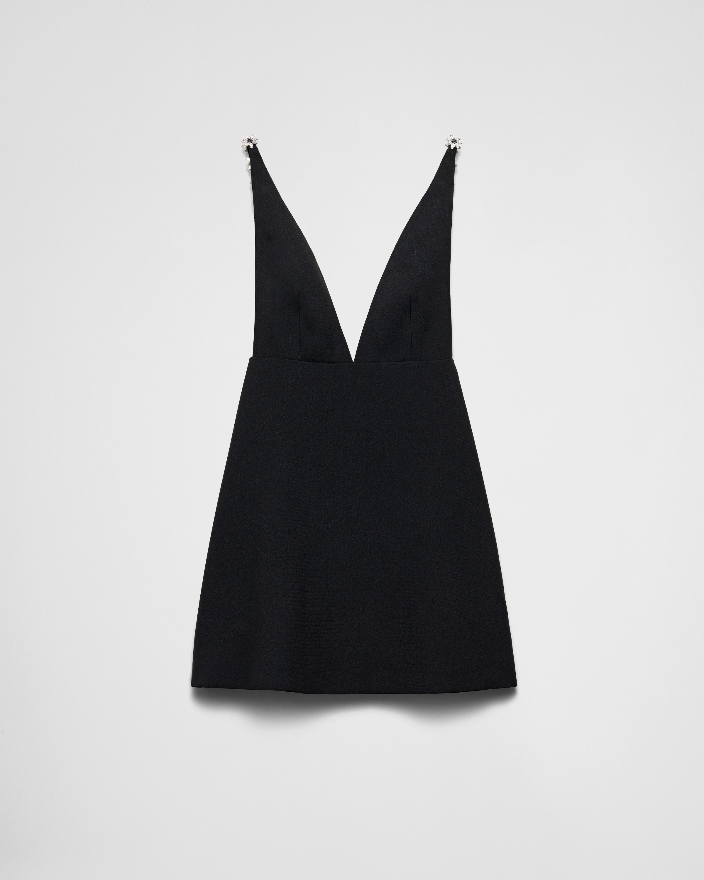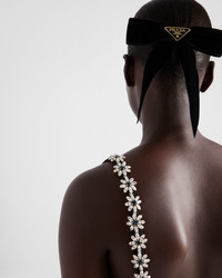 Dazzling touches elevate this sophisticated, flared mini-dress, defined by a deep V-neck and embellished with jewel straps and velvet bows. A blend of textures and refined details expressing a modern evening elegance. - Product code: P3O34R_16ES_F0002_S_OOO - Flared fit - Lined - Deep V-neck - Side zipper fastening - Sleeveless - Flared hem - Jewelled straps detail at the back ending with velvet bows - Imported - The model is 179 cm tall and wears a size 38 Height: 85cm MATERIALS Viscose