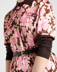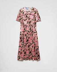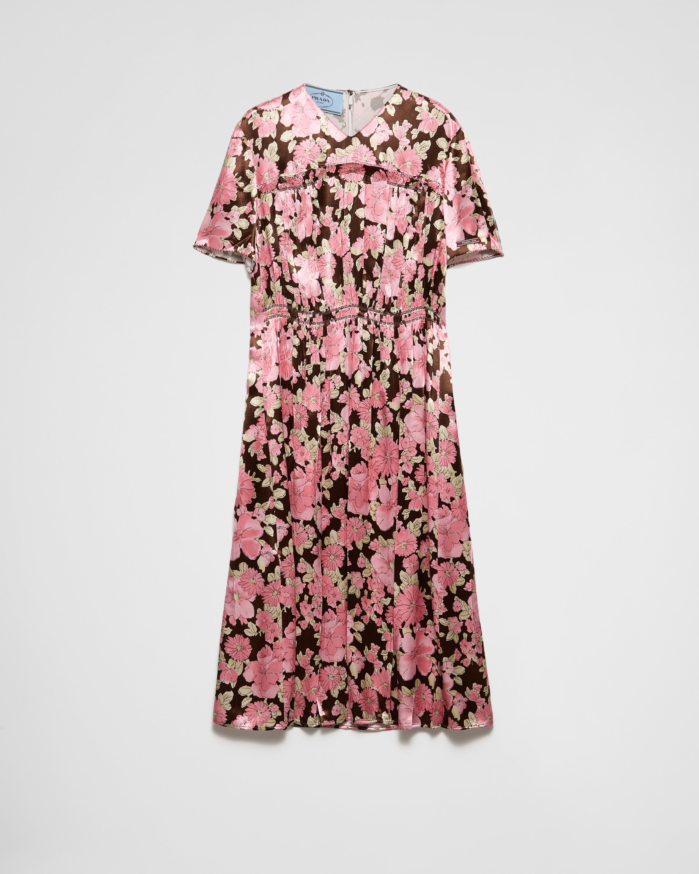 A refined floral print embellishes this dress with retro charm. The fluid touch of satin is emphasized by the draping and embroidery on the front, while the back is straight and simple. - Product code: P3O92R_16TD_F0192_S_OOO - «Primrose» print - Loose fit - Unlined garment - V-neck - Back closure with buttons - Short sleeves - Sartorial logo label - Straight hem - Embroidered detail on the bodice front and sleeves - Imported - The model is 179 cm tall and wears a size 38 Height: 135cm MATERIALS Main material: 100% viscose