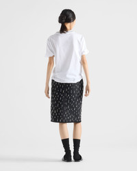 Embroidered scuba midi-skirt