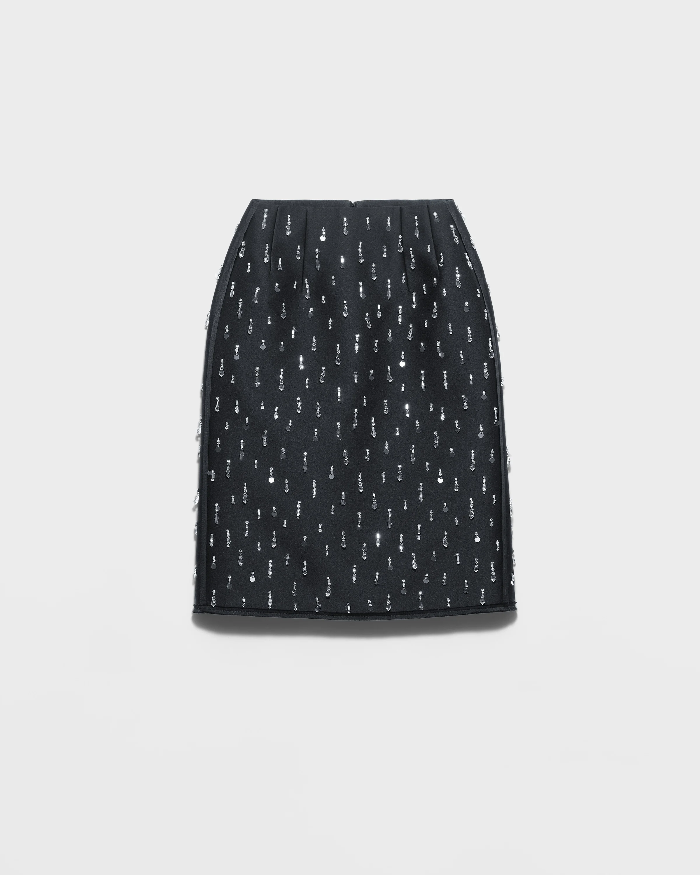 Sophisticated interactions characterize this pencil skirt with a structured, shaped silhouette. Shimmering embroidery adds an elegant, precious touch to the tailored silhouette. - Product code: P169ZR_18PI_F0002_S_OOO - Pencil silhouette - Lined garment - Back slit - Side zipper with hook - All-over sequin embellishment - Imported - The model is 178 cm tall and wears a size 38 Height: 65cm MATERIALS Nylon