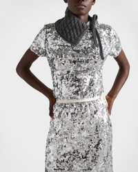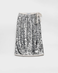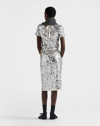 Delicately embroidered with all-over sequins, this skirt captures Prada’s sophisticated spirit, blending radiant design with exquisite artisanal craftsmanship. - Product code: P120ZR_176A_F0118_S_OOO - Sheath fit - Lined garment - Side closure with snap buttons and ribbon - Imported - The model is 180 cm tall and wears a size 38 Height: 65cm MATERIALS Main material: 100% polyamide - 100% polyester