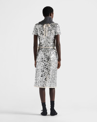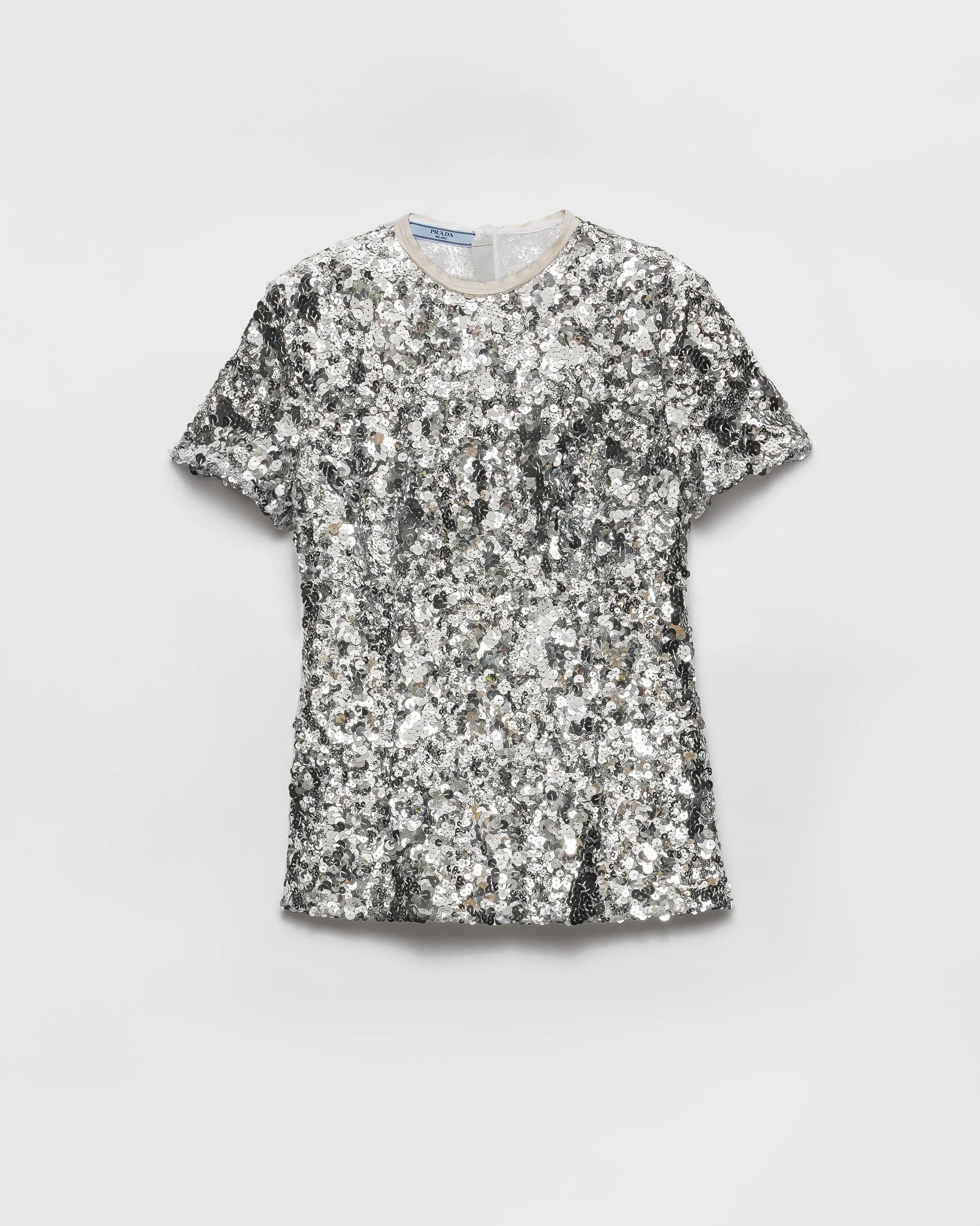 A unique texture with a liquid, dynamic effect defines this elegant top, crafted with refined artisanal techniques. The streamlined design is enhanced with hand-embroidered sequins that create a luminous and sophisticated surface. - Product code: P974MR_176A_F0118_S_OOO - Slim fit - Lined garment - Crew neck - Back zip closure - Short sleeves - Straight hem - Imported - The model is 180 cm tall and wears a size 38 Height: 60cm MATERIALS Main material: 100% polyamide - 100% polyester