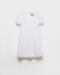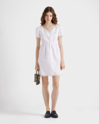 This light, delicate, lingerie-style mini-dress combines romantic notes and refined vintage details. The airy style is embellished with lace trim edging the V-neck and is decorated with the triangle logo. - Product code: P3Q07R_160V_F0009_S_OOO - Loose fit - Unlined - V-neck - Back zipper closure - Short sleeves - Lace-trimmed triangle logo - Lace trim - Imported - The model is 178 cm tall and wears a size 38 Height: 80cm MATERIALS Main material: 86% cotton 14% linen