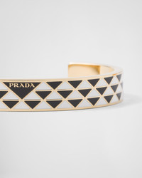 The iconic triangle, the distinctive signature of Prada collections, is transformed into a geometric pattern that embellishes this enameled metal bracelet. The accessory with sleek, contemporary lines is decorated with the lettering logo that completes the bangle design with an iconic note. - Product code: 1IB846_2CO2_F0TTY - Enameled logo - Imported Height: 1.1cm MATERIALS Other Materials