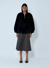 Bomber jacket in faux fur with zip closure. - Ribbed collar and cuffs - Front zip fastening - Logo plaque at chest - 100% Recycled polyamide - Color: Black - Code: PZV015 12DH F0002