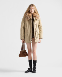 This down jacket balancing functionality and sophistication combines a pragmatic silhouette with distinctive details. The soft shearling collar adds a unique and unexpected touch to the garment characterized by its goose down padding. - Product code: 29X289_17ID_F0065_S_OOO - Relaxed fit - The garment fits up to two sizes larger - Goose down padding - Shirt-style collar - Removable shearling collar attached with buttons - Long sleeves - Ribbed knit cuffs - Zipper and button closure - Four flapped pockets - Leather triangle logo on the back - Checked twill lining - Internal drawstring at the waist - Imported - The model is 180 cm tall and wears a size 38 Height: 75cm MATERIALS Main material: 100% cotton