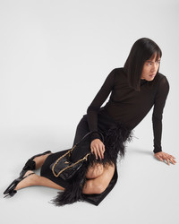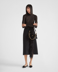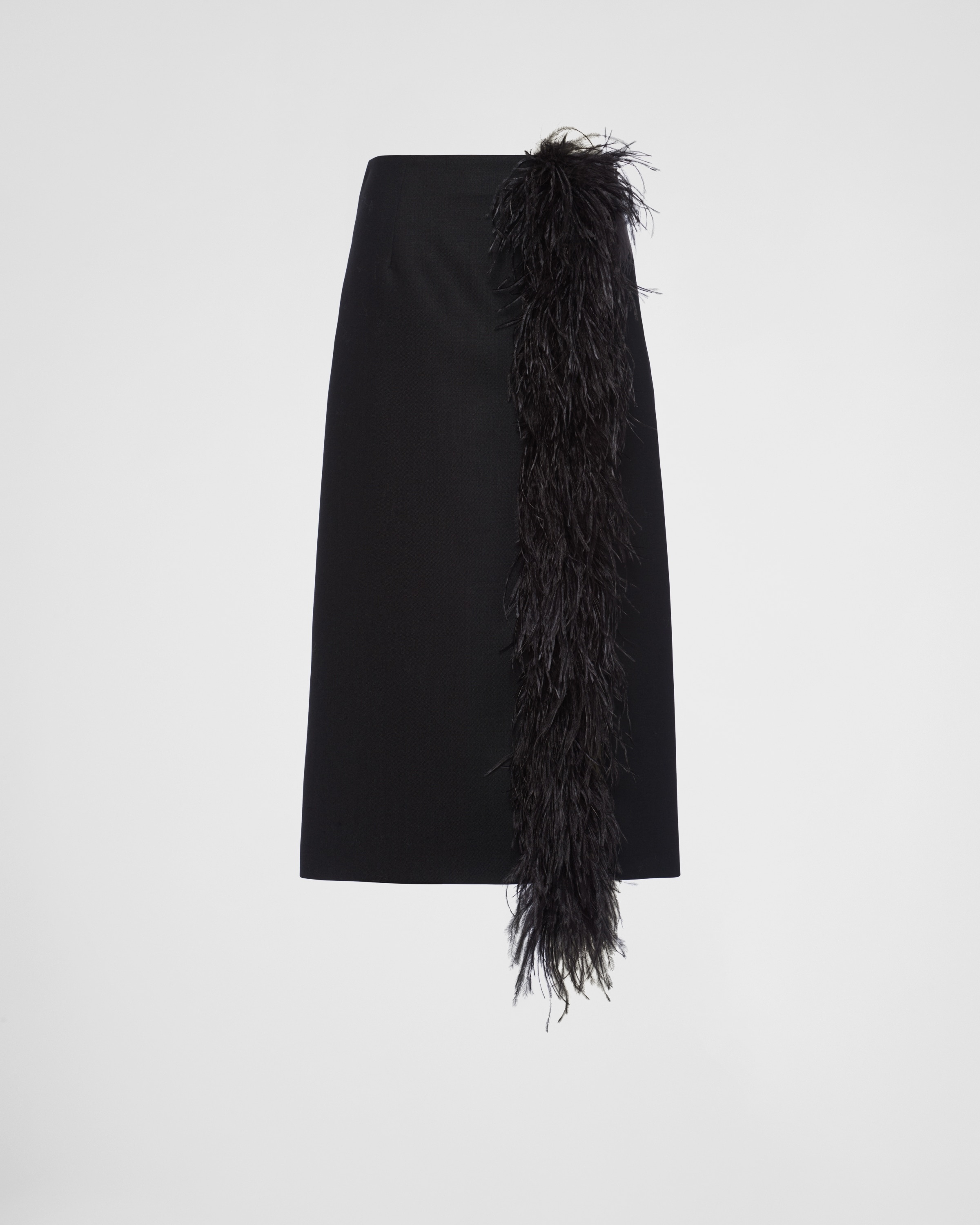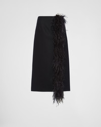 Feather-trimmed wool midi-skirt
