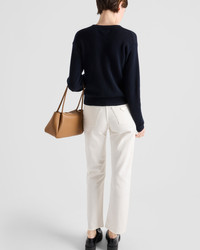 These denim jeans have a classic five-pocket silhouette defined by the high-rise waist and straight leg. The style with contemporary allure is decorated with the enameled metal triangle logo. - Product code: GFP507_14LW_F01CD_S_OOO - Garment-dyed treatment - Classic fit - High-rise waist - Hem width: 19.5 cm, Size:25 - Button fly - Matching stitching - Rounded front pockets with coin pocket - Patch pockets on the back - Total length: 108 cm, Size: 25 - Triangle logo - Imported - The model is 179 cm tall and wears a size 38 Height: 108cm MATERIALS Main material: 100% cotton
