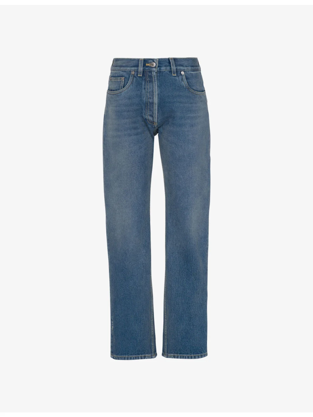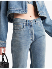 PRODUCT DETAILS - Prada denim jeans - 100% cotton - Pulls on - Regular fit, high rise, straight leg, structured waistband, belt loops, five pockets,contrast stitching - True to size - Midweight, non-stretch Ref: R04320487