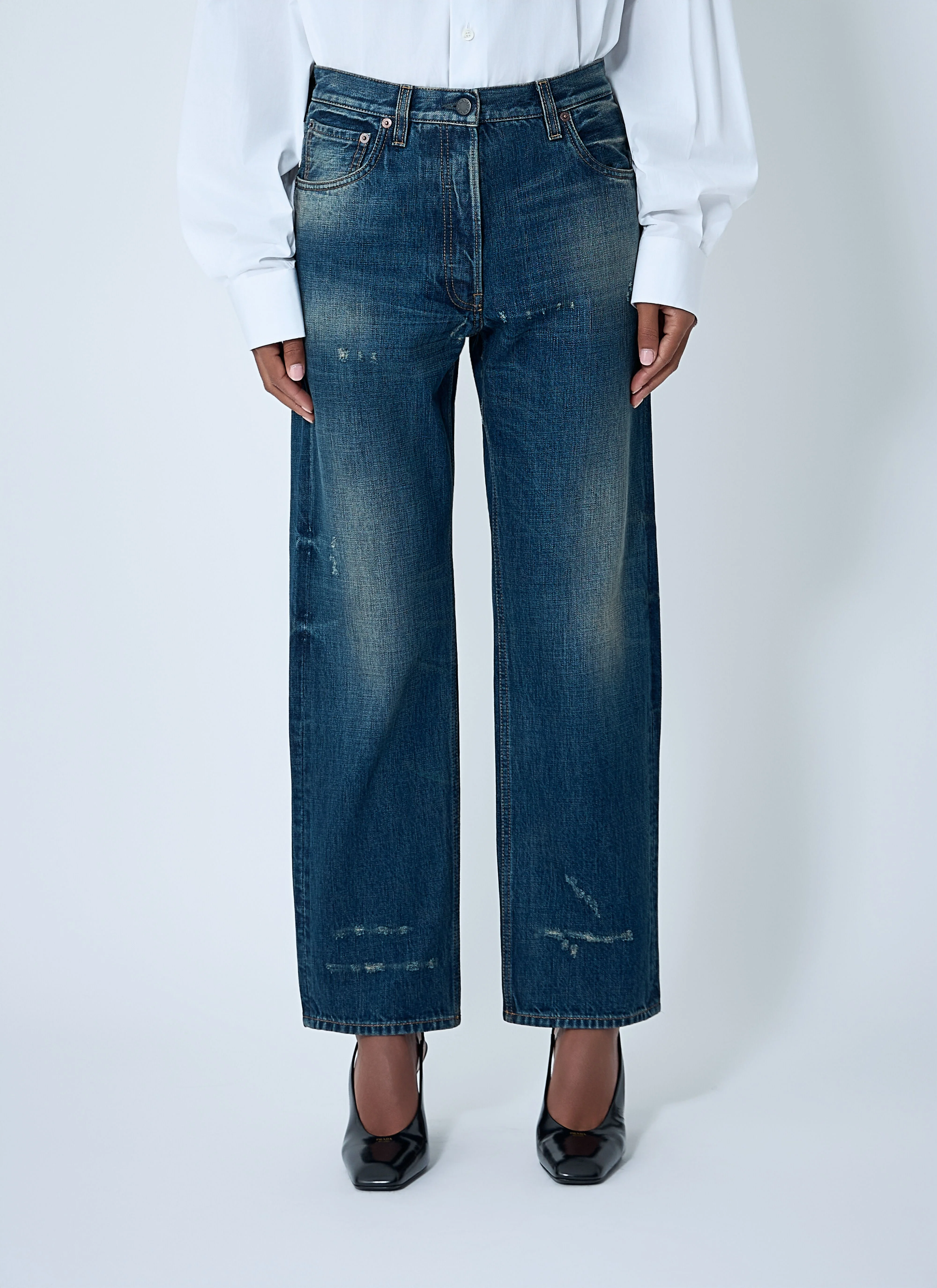 Relaxed fit denim jeans in distressed finish. - Mid rise - Button and zip fastening - Belt loop - Five-pocket design - 100% Cotton. Dry clean - Color: Denim - Code: GFP536 1631 F0008