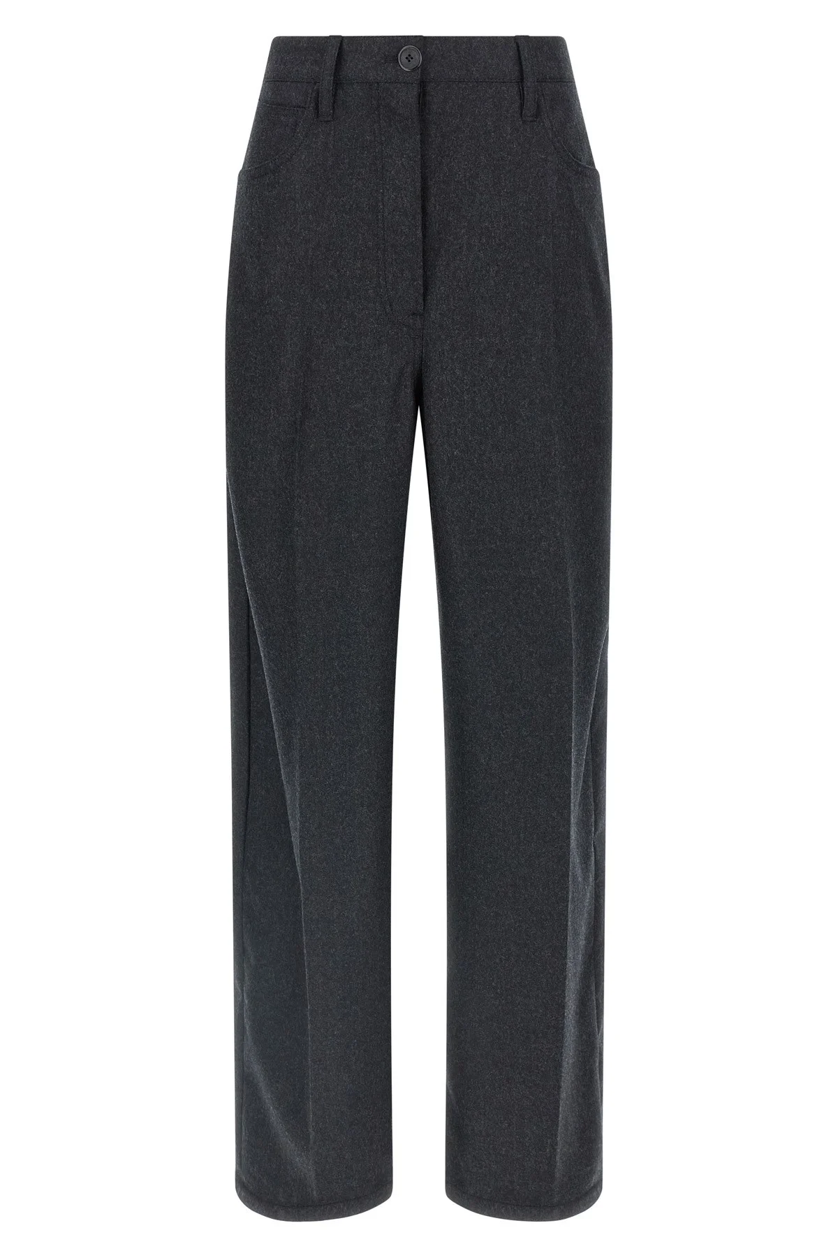 cod. P265JSOOO11GZF0308 Wool flannel trousers, stretched pleat, wide leg, front button closure, pockets. Color: Gray Size & Fit: true to size fit Composition: 100% virgin wool Made in: Italy