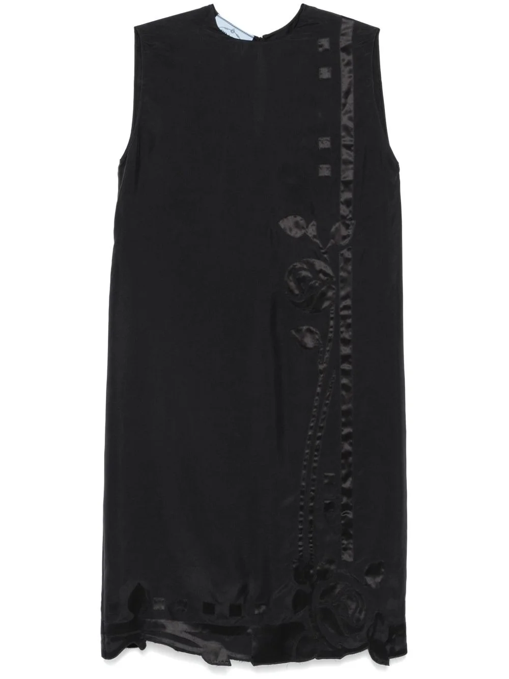 floral-applique midi dress Highlights - Black - Silk - Satin finish - Floral applique - Single rear button fastening - Round neck - Sleeveless - Asymmetric hem - Mid-length Composition Silk 100% SIZE & FIT Model measurements Height 5 ft 10 in(1.77 m) Bust/Chest 33.07 in(84 cm) Hips 37 in(94 cm) Waist 24.8 in(63 cm) FittingInformation Designed for a relaxed fit, this piece allows for comfort and movement when worn Made from a midweight non-stretch fabric Washing instructions Do Not Wash/Do Not Dry Clean