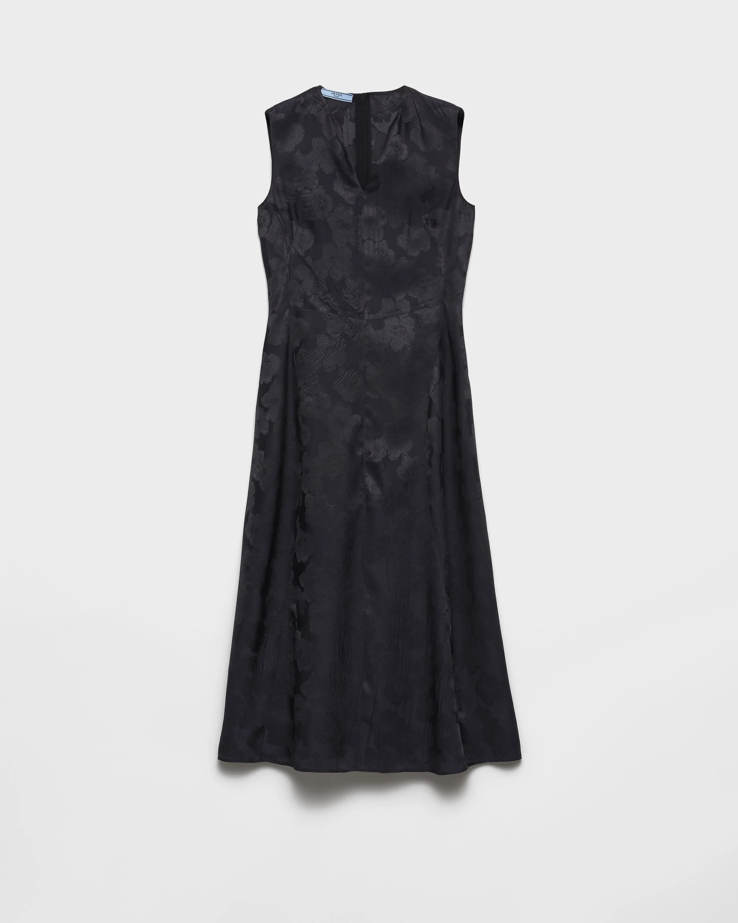 Clean, refined lines shape the silhouette of this dress with a vintage-inspired allure. Romantic and feminine touches enrich the design, brought to life by a jacquard floral pattern. - Product code: P3Q20X_17ZC_F0170_S_OOO - Loose fit - Unlined - V-neck - Back zip closure - Sleeveless - Flared hem - Fabric bow at the back - Imported - The model is 180 cm tall and wears a size 38 Height: 120cm MATERIALS Main material: 44% silk 56% viscose