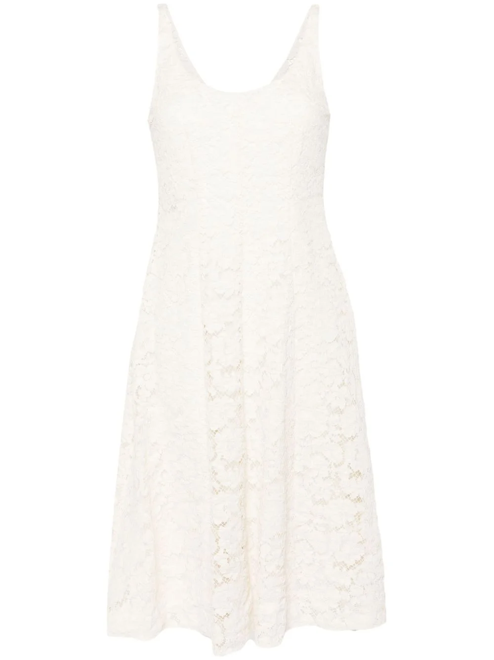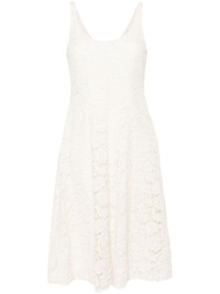 floral-lace A-line dress Highlights - Off-white - Cotton blend - Floral lace design - Scoop neck - Concealed side zip fastening - Sleeveless - Fitted waistline - A-line - Straight hem - Mid-length - Detachable slip dress Composition Outer: Cotton 67%, Viscose 16%, Metallic Fibre 11%, Polyamide 6% Lining: Recycled Cupro 60%, Silk 40% SIZE & FIT Model measurements Height 5 ft 9 in(1.76 m) Bust/Chest 31.88 in(81 cm) Hips 35.43 in(90 cm) Waist 24.8 in(63 cm) FittingInformation Designed for a close fit at the chest and waist with a loose fit at the hip The dart stitching adds structure and a closer fit in the torso of this piece Made from a midweight non-stretch fabric This piece fits true to size – take your usual size Washing instructions Dry Clean Only
