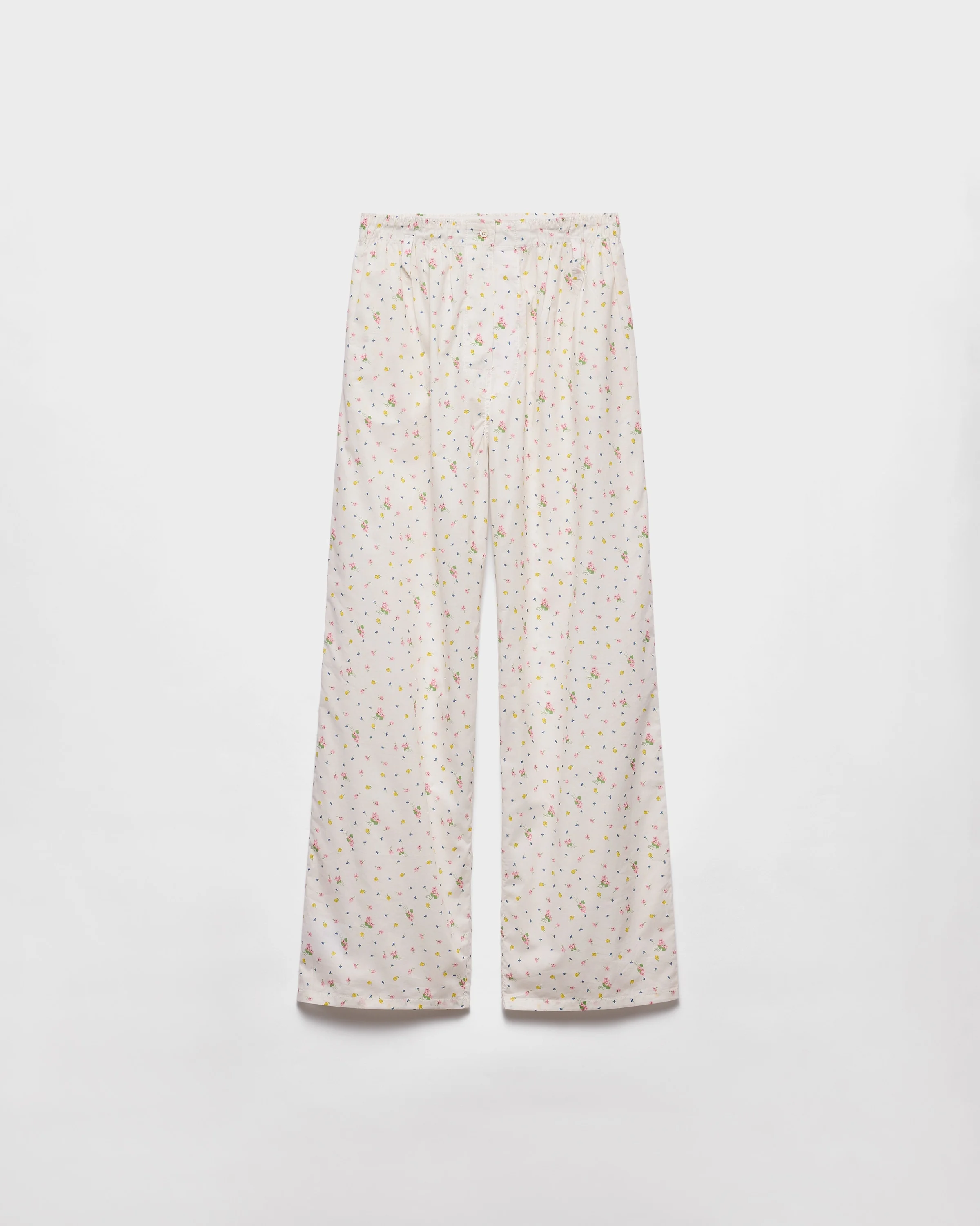 These light, delicate pajama-style pants in batiste cotton combine a soft, contemporary silhouette with vintage-inspired romantic details. The wide-leg style is embellished with a floral micro-print. - Product code: P252JL_17ML_F0009_S_OOO - «Flowers» print - Wide-leg fit - Concealed button fly - Inseam pockets - Elasticized waistband - Imported - The model is 178 cm tall and wears a size 38 Height: 120cm MATERIALS Main material: 100% cotton