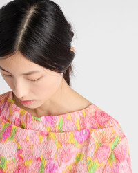 The Fall/Winter 2025 collection questions the perception of femininity and redefines its emblematic garments. This dress combines loose lines, details with vintage charm, and a vibrant floral print, an expression of unconventional, modernist elegance. - Product code: P3Q66K_18E7_F0028_S_OOO - Loose fit - Unlined garment - Boat neck - Back zipper closure - Short sleeves - Removable leather belt - Imported - The model is 180 cm tall and wears a size 38 Height: 105cm MATERIALS Main material: 28% acrylic 72% silk
