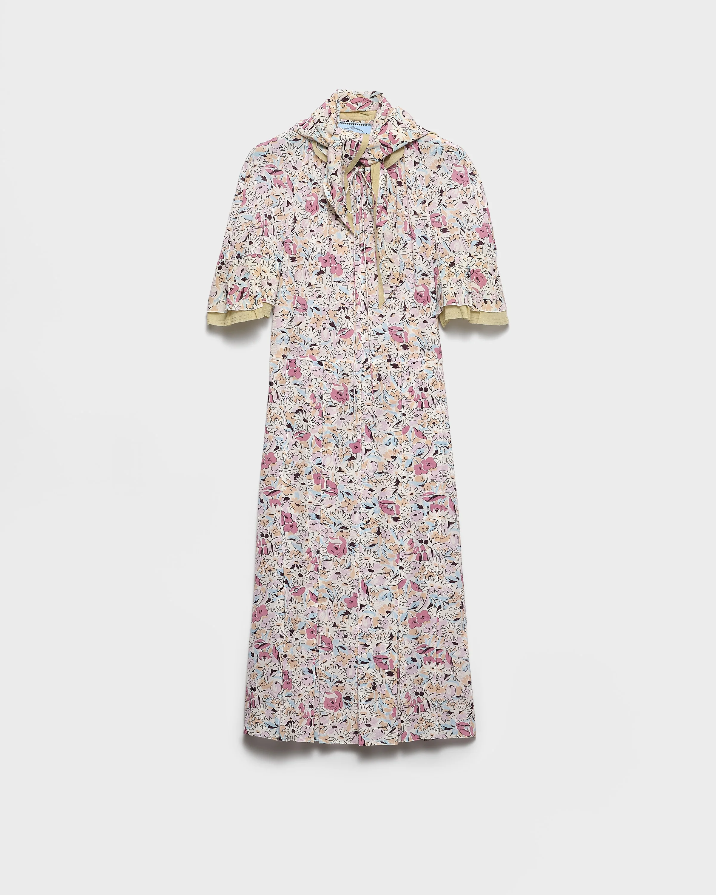 This sophisticated georgette dress combining retro charm and contemporary notes has a fluid and dynamic silhouette with feminine details. A refined floral print animates the short-sleeved style completed by a matching scarf that can be worn in different ways. - Product code: P3R39_19BM_F0203_S_OOO - Primrose print - Loose fit - Unlined garment - Round neck - Side zipper closure - Short sleeves - Straight hem - With scarf - Imported - The model is 180 cm tall and wears a size 38 Height: 105cm MATERIALS Main material: 9% Elastane 91% Silk