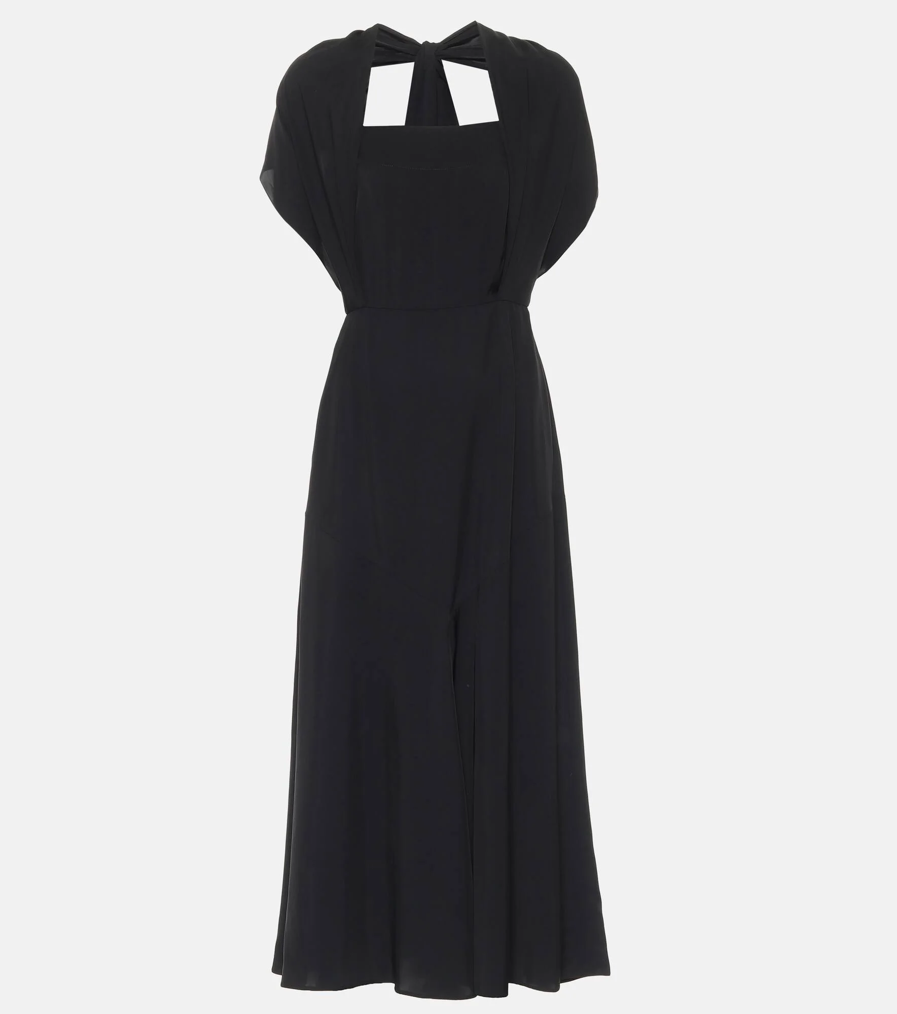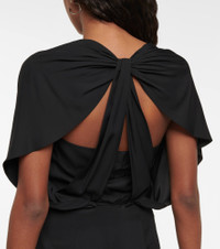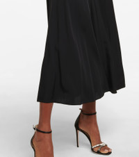This black cocktail dress from Prada is perfect for the woman with the busy social calendar. It's made to drape beautifully: the soft, fluid twill fabrication has a supremely soft handle and liquid effect. It has a camisole bodice with a cape-like detail that encloses the shoulders and wraps at the back – a testament to the label's attention to detail. For your next festive occasion, accessorize minimally with a simple clutch and pumps. Product Details - Made in Italy - Closure: zipped side, hook fastening - Material: 100% viscose - Designer color name: Black - Care instructions: dry clean - Item number: P00495833 Size & Fit - True to size - Low back - Cinched waist - The model seen in the picture is 178cm-5'10" and wearing a size IT 40