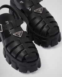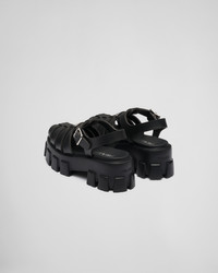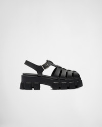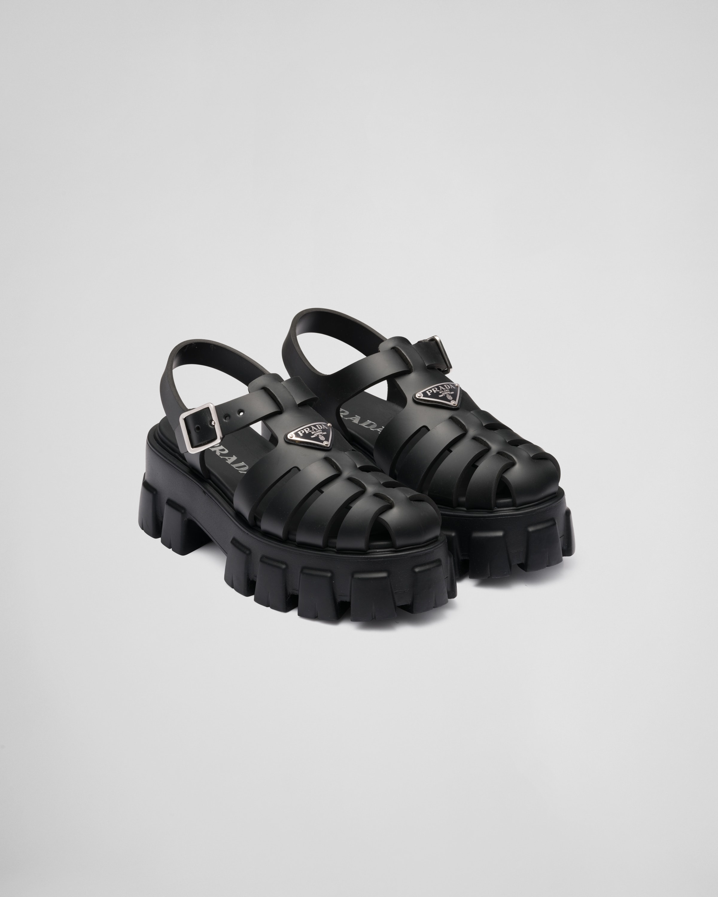 A beach silhouette with retro charm is reinterpreted in a new and contemporary way in the design of these sandals. The timeless style is enriched by the iconic Monolith sole that combines important volumes with light rubber, becoming an expression of Prada's dual soul. The hybrid footwear is decorated with the distinctive enameled metal triangle logo. - Product code: 1X853M_3LKK_F0002_F_DD55 - Upper with metal buckle - Enameled metal triangle logo - Rubber sole, height 55 mm - Lug tread - Imported MATERIALS Main material: Ethyl vinyl acetate - eva