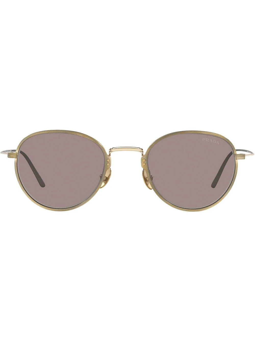 frameless round-frame sunglasses Do you believe in love at first sight? You will do after locking eyes with these rimless round frame sunglasses from Prada. The two of you will make the perfect pair. Highlights - Satin pale gold - Frameless design - Round frame - Uv-protective lenses - Brown tinted lenses - Lens decal - Nose pads - Gold-tone hardware - Straight arms - Straight tips - We know you'll look after them, but these glasses come with protection, just in case. Composition Outer: Titanium 100%