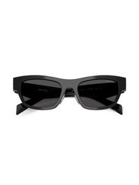 geometric-frame sunglasses Highlights - Black - Acetate - Geometric frame - Grey tinted lenses - Uv-protective lenses - Logo print at the arm - Nose pads - Enamel triangle logo - Oversize arms - Curved tips - These glasses come with a protective case. Composition Acetate 100% SIZE & FIT Measurement Arm Length 5.7 in(14.5 cm) Bridge Width 0.74 in(1.9 cm) Lens Diameter 2.08 in(5.3 cm)