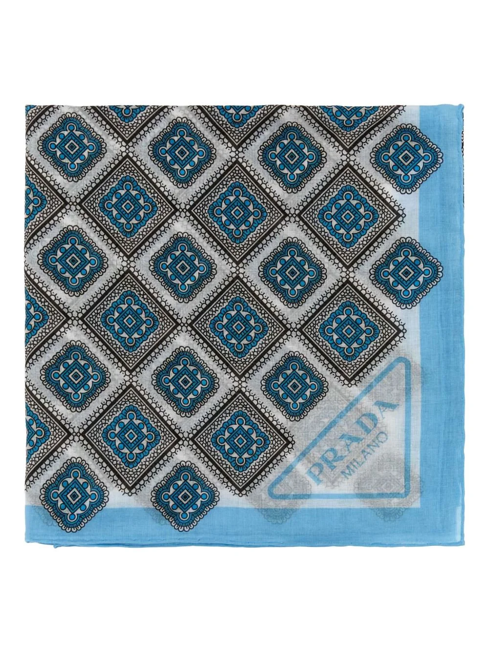 geometric-pattern cotton foulard Highlights - Blue - Cotton - Geometric pattern - Black detailing - White background - Repeating motif Composition Cotton 100%