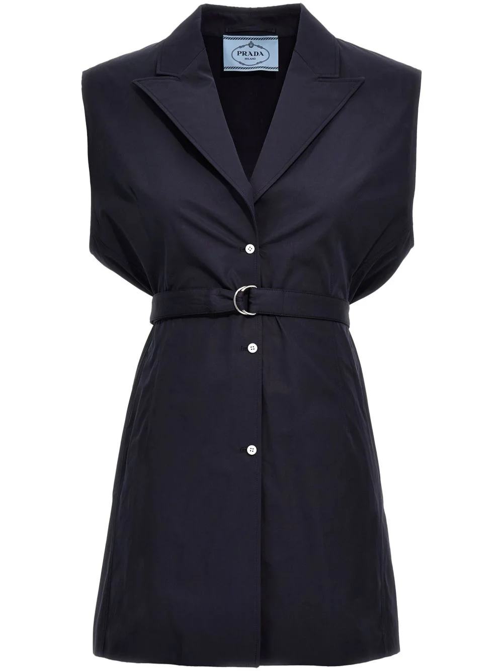 belted poplin vest Highlights - Blue - Front button fastening - Belted waist - Straight hem Composition Cotton 100% Washing instructions Read Manufacturer Guidelines